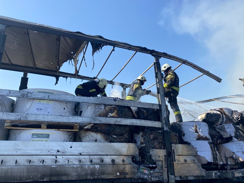 Yangının dorseye sıçramasıyla sürücü M.Ç., çekiciyi dorseden ayırarak 112 Acil Çağrı Merkezi’ne ihbarda bulundu.